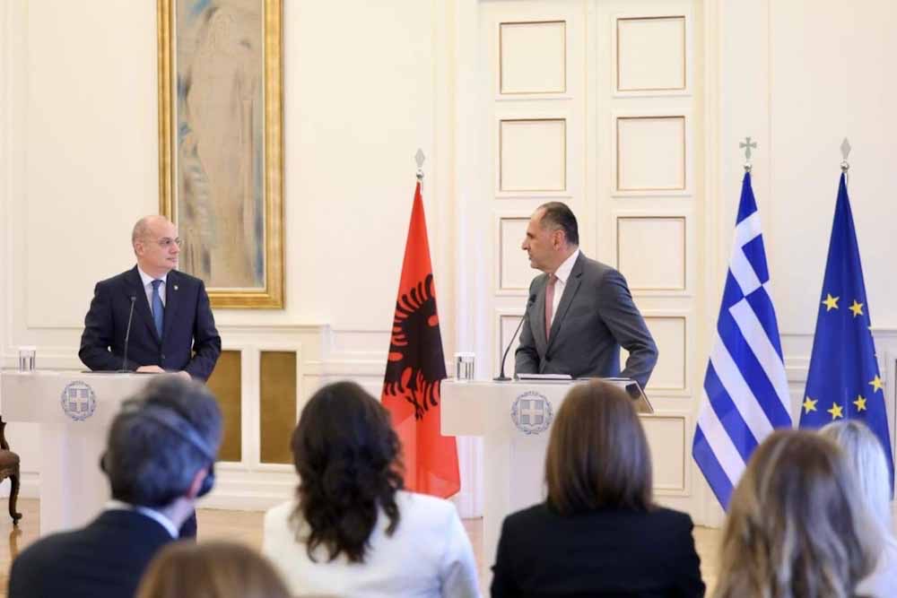 Θέματα της ελληνικής μειονότητας στην Αλβανία, η προστασία της οποίας είναι «μείζονα προτεραιότητα για την Ελλάδα», της κοινότητας των Αλβανών την Ελλάδα, καθώς και θέματα ασφάλειας, οικονομίας, εμπορίου, επενδύσεων και διασυνδεσιμότητας, συζητήθηκαν σήμερα στη συνάντηση του υπουργού Εξωτερικών, Γιώργου Γεραπετρίτη, με τον υπουργό Ευρώπης και Εξωτερικών της Αλβανίας, Igli Hasani.