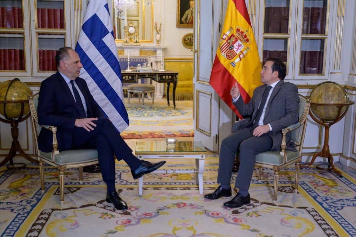 Συνάντηση Γεραπετρίτη με τον Ισπανό ομόλογό του – Συμφωνήθηκε η ανάγκη ενός αποφασιστικού άλματος της ΕΕ «προς τη στρατηγική αυτονομία», τόνισε ο Έλληνας ΥΠΕΞ