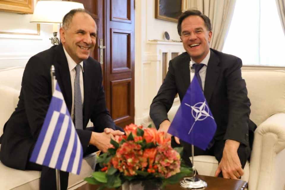 Με τον Γενικό Γραμματέα του ΝΑΤΟ, Μαρκ Ρούτε, ο οποίος πραγματοποιεί επίσκεψη στην Αθήνα, είχε νωρίτερα σήμερα ο υπουργός Εξωτερικών, Γιώργος Γεραπετρίτης, στο υπουργείο Εξωτερικών.