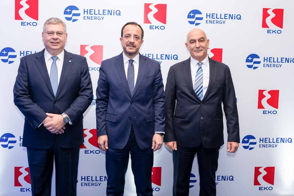 (Από αριστερά), ο Διευθύνων Σύμβουλος της HELLENiQ ENERGY κ. Ανδρέας Σιάμισιης, ο Πρόεδρος της Κυπριακής Δημοκρατίας κ. Νίκος Χριστοδουλίδης και ο Διευθύνων Σύμβουλος της EKO Κύπρου κ. Γιώργος Γρηγοράς.