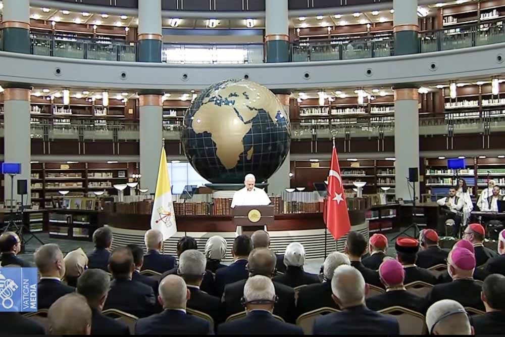 Μετά την κατ’ ιδίαν συνάντησή τους και τη διευρυμένη συνάντηση μεταξύ των αντιπροσωπειών των δύο πλευρών, Πάπας και Ερντογάν απηύθυναν ομιλίες στους προσκεκλημένους στη βιβλιοθήκη του προεδρικού μεγάρου.