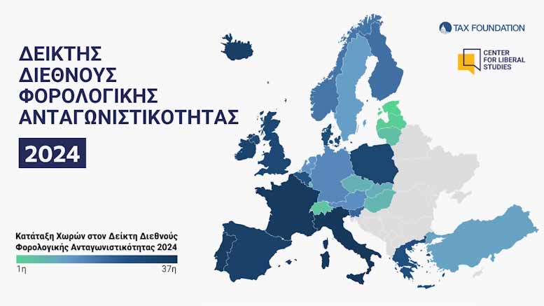 Η Ελλάδα καταλαμβάνει την 27η θέση ανάμεσα στις 38 χώρες του ΟΟΣΑ στον εφετινό Δείκτη Διεθνούς Φορολογικής Ανταγωνιστικότητας, σύμφωνα με την έκθεση που δημοσιεύει το Κέντρο Φιλελεύθερων Μελετών (ΚΕΦΙΜ), σε συνεργασία με το Tax Foundation.