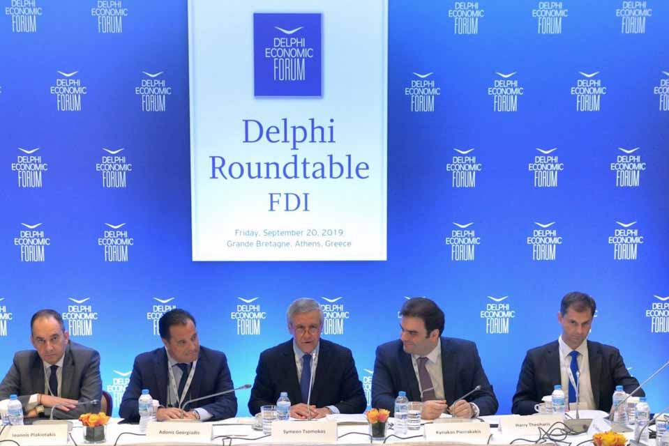 Όπως αναφερεται σε ανακοίνωση των διοργανωτών υπουργοί και υφυπουργοί από αρμόδια υπουργεία της Κυβέρνησης συναντήθηκαν σήμερα, Παρασκευή 20 Σεπτεμβρίου, με σημαντικά ονόματα από διεθνείς και ιδιώτες επενδυτές στη Συνάντηση Στρογγυλής Τραπέζης για ‘Αμεσες Διεθνείς Επενδύσεις (Foreign DirectInvestments Roundtable), που διοργάνωσε το Οικονομικό Φόρουμ των Δελφών.
