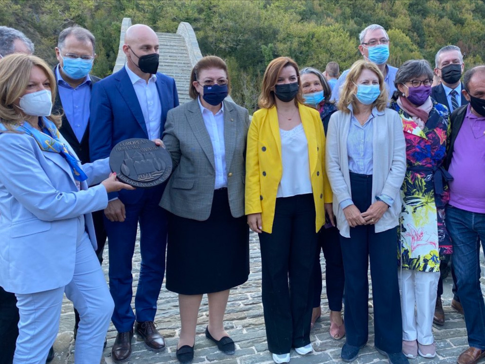 Σε μια ιδιαίτερη τελετή στον χώρο του αποκατεστημένου γεφυριού, εκπρόσωποι των συντελεστών του έργου παρέλαβαν την τιμητική πλακέτα από την Europa Nostra.