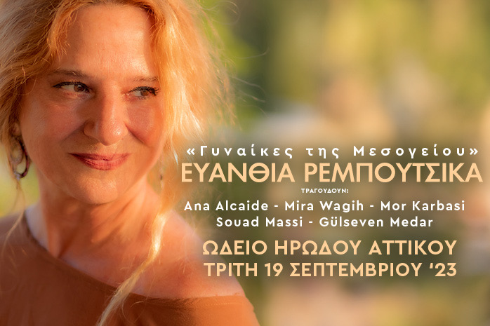 Η πολυβραβευμένη μας συνθέτης και μουσικός Ευανθία Ρεμπούτσικα με το ανυπέρβλητο μουσικό της σύνολο, υποδέχονται πέντε κορυφαίες φωνές της Μεσογείου και παρουσιάζουν μαζί στο Ηρώδειο ένα εντελώς καινούργιο, εντυπωσιακό και πάντα ταξιδιάρικο πρόγραμμα