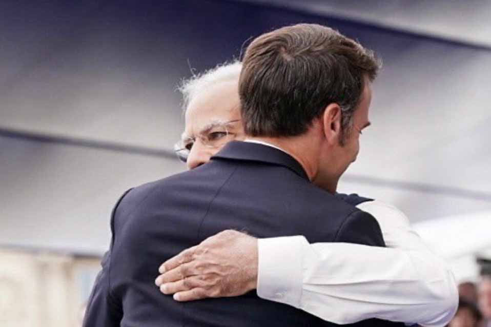 Ο Γάλλος πρόεδρος, Εμανουέλ Μακρόν, απένειμε τον Μεγαλόσταυρο της Λεγεώνας της Τιμής στον πρωθυπουργό της Ινδίας Ναρέντρα Μόντι, τιμώμενο πρόσωπο στις 14 Ιουλίου, την Ημέρα της Βαστίλης.