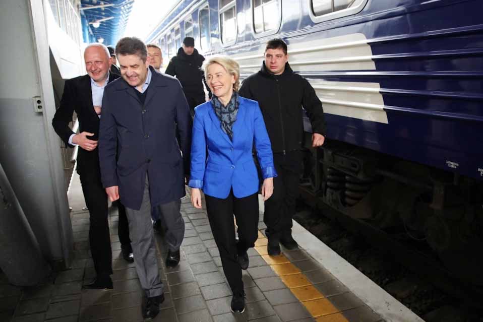 «Χαιρετίζω ζωηρά την απόφαση του προέδρου Ζελένσκι να κάνει την 9η Μαΐου Ημέρα της Ευρώπης. Η Ουκρανία αποτελεί μέρος της ευρωπαϊκής οικογένειάς μας», δήλωσε η φον ντερ Λάιεν στους δημοσιογράφους που την συνόδευαν επί της αμαξοστοιχίας για το Κίεβο.