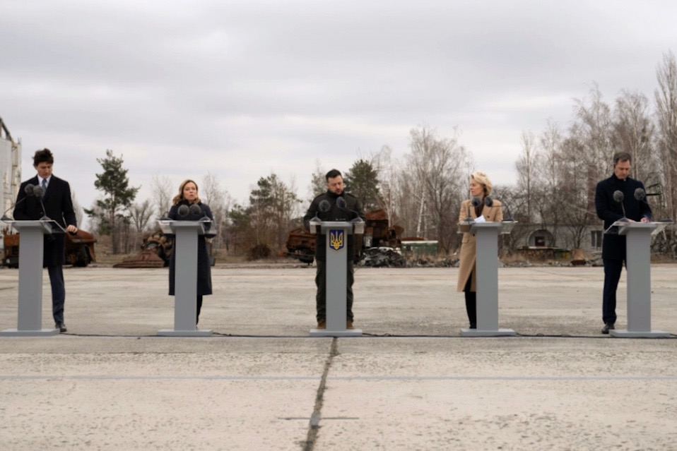 Σε τρεις εβδομάδες αναμένεται να παρουσιαστεί η πρόταση για νέα αμυντική βιομηχανική στρατηγική της ΕΕ ανέφερε η Πρόεδρος της Κομισιόν, Ούρσουλα φον ντερ Λάιεν στην κοινή συνέντευξη τύπου που παραχώρησαν με τον Πρόεδρο της Ουκρανίας, Βολοντίμιρ Ζελένσκι, τον Πρωθυπουργό του Βελγίου, Αλεξάντερ Ντε Κροο, την Πρωθυπουργό της Ιταλίας Τζόρτζια και Μελόνι και τον Πρωθυπουργό του Καναδά, Ζυστίν Τριντό.