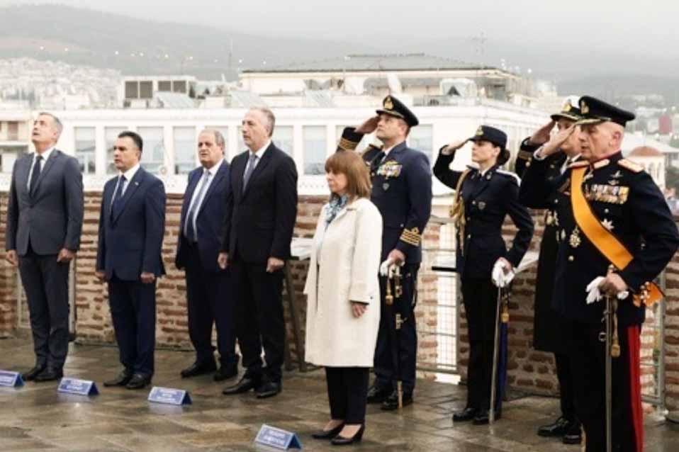Η Πρόεδρος της Δημοκρατίας Κατερίνα Σακελλαροπούλου παρέστη στην έπαρση της σημαίας στον Λευκό Πύργο και ακολούθως στην επίσημη δοξολογία στον Ιερό Ναό του Αγίου Δημητρίου.