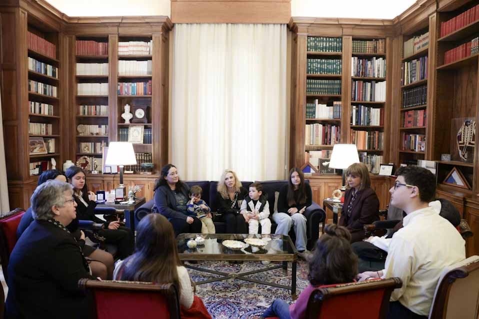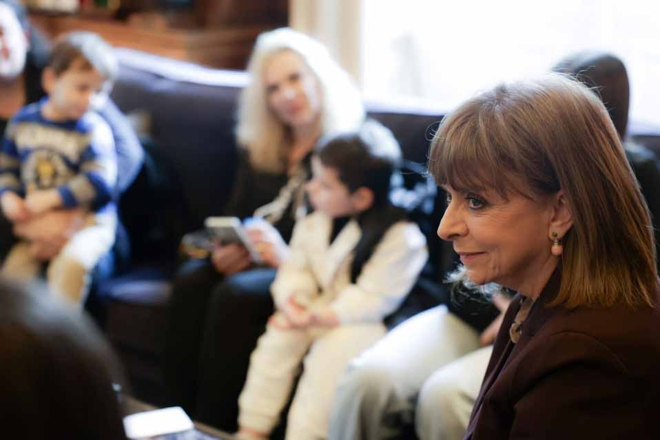 Η κ. Σακελλαροπούλου δέχθηκε στο γραφείο της, στο Προεδρικό Μέγαρο, εννέα παιδιά ηλικιών από 3 ετών έως 15 ετών, που έχουν ξεπεράσει τον καρκίνο, μαζί με τους γονείς τους, καθώς και την Πρόεδρο του Συλλόγου Γονιών Παιδιών με Νεοπλασματική Ασθένεια «Η Φλόγα» Μαρία Τρυφωνίδη, σε μια συνάντηση γεμάτη ανάμεικτα συναισθήματα και δυνατούς συμβολισμούς.