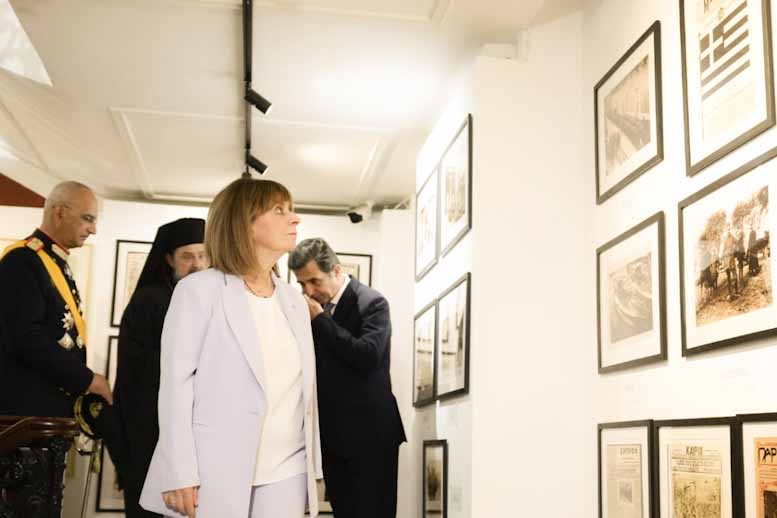 Την Πρόεδρο της Δημοκρατίας καλωσόρισε στην έκθεση ο δήμαρχος Θεσσαλονίκης Στέλιος Αγγελούδης ενώ η επιμελήτριά της, ιστορικός τέχνης Κάτια Κιλεσσοπούλου ξενάγησε την Πρόεδρο, παρουσία του υφυπουργού Εσωτερικών, Κώστα Γκιουλέκα και του γγ της Κοινοβουλευτικής Ομάδας της ΝΔ Σταύρου Καλαφάτη. Στον χαιρετισμό του ο κ. Αγγελούδης σημείωσε ότι το ‘Αγιον Όρος αποτελεί την κιβωτό της Ορθοδοξίας, αναφέρθηκε στη σχέση του με τη Θεσσαλονίκη και πρόσθεσε πως μέσα από την έκθεση ο καθένας έχει τη δυνατότητα να γνωρίσει τα έργα κάποιων απο τους πιο σημαντικούς εικαστικούς της γενιάς του ’30 και να μάθει περισσότερα για τη σχέση που ανέπτυξαν με την Αθωνική Πολιτεία.