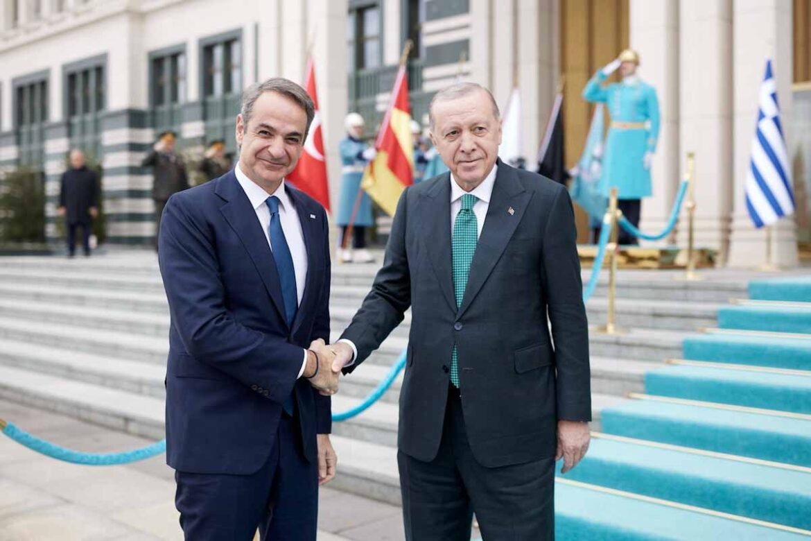 Ο Τούρκος πρόεδρος υποδέχθηκε τον Πρωθυπουργό στο Προεδρικό Μέγαρο στην Άγκυρα με τους δύο ηγέτες να έχουν έναν σύντομο διάλογο.