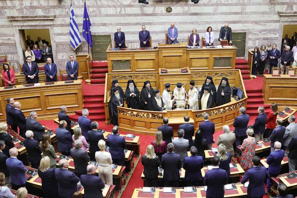 Πραγματοποιήθηκε σήμερα στην Ολομέλεια της Βουλής των Ελλήνων η καθιερωμένη Τελετή Αγιασμού για την έναρξη των εργασιών της Γ΄ Συνόδου της Κ΄ Κοινοβουλευτικής Περιόδου από τον Αρχιεπίσκοπο Αθηνών και Πάσης Ελλάδος κ. Ιερώνυμο και μέλη της Ιεράς Συνόδου.