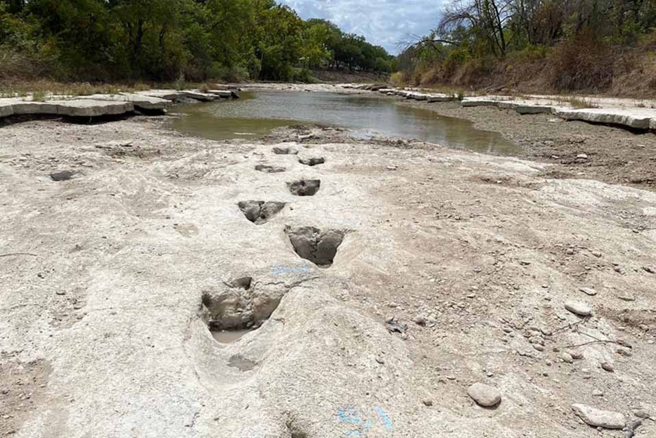 Λόγω της παρατεταμένης ξηρασίας, ίχνη δεινοσαύρων – που χρονολογούνται πριν από 113 εκατομμύρια χρόνια – ήρθαν στο φως σε μια αποξηραμένη κοίτη ποταμού στο Τέξας των Ηνωμένων Πολιτειών, όπως δήλωσε χθες Τρίτη αξιωματούχος της αμερικανικής πολιτείας.