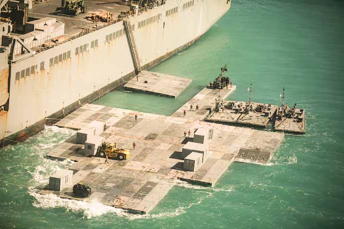 Πλωτή πλατφόρμα, που θα λειτουργεί ως προβλήτα από το έδαφος της Γάζας στα πλοία του αμερικανικού Πολεμικού Ναυτικού επιστρατεύουν οι ΗΠΑ, ούτως ώστε να συνδράμουν με ανθρωπιστική βοήθεια στους Παλαιστινίους.