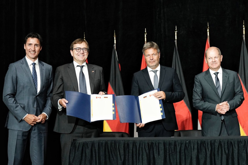 Ο γερμανός υπουργός Οικονομίας Ρόμπερτ Χάμπεκ και ο καναδός υπουργός Ενέργειας Τζόναθαν Γουίλκινσον υπέγραψαν τη συμφωνία σε τελετή που πραγματοποιήθηκε στο Στέφενσβιλ της Νέας Γης, παρουσία του καγκελάριου της Γερμανίας Όλαφ Σολτς και του πρωθυπουργού του Καναδά Τζάστιν Τριντό.