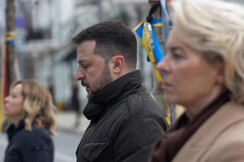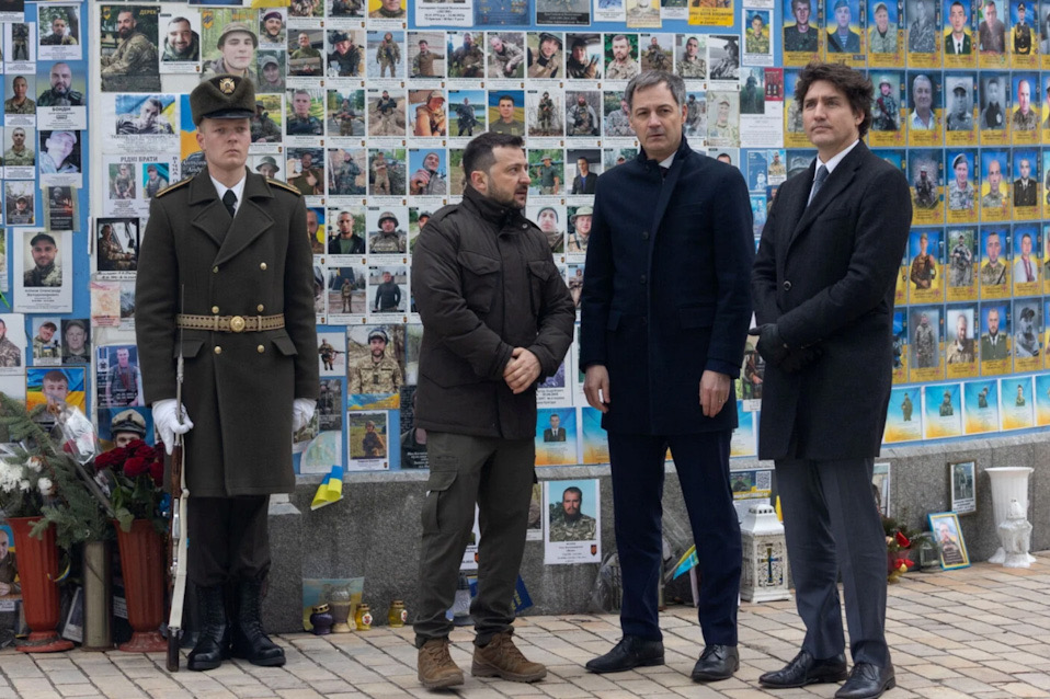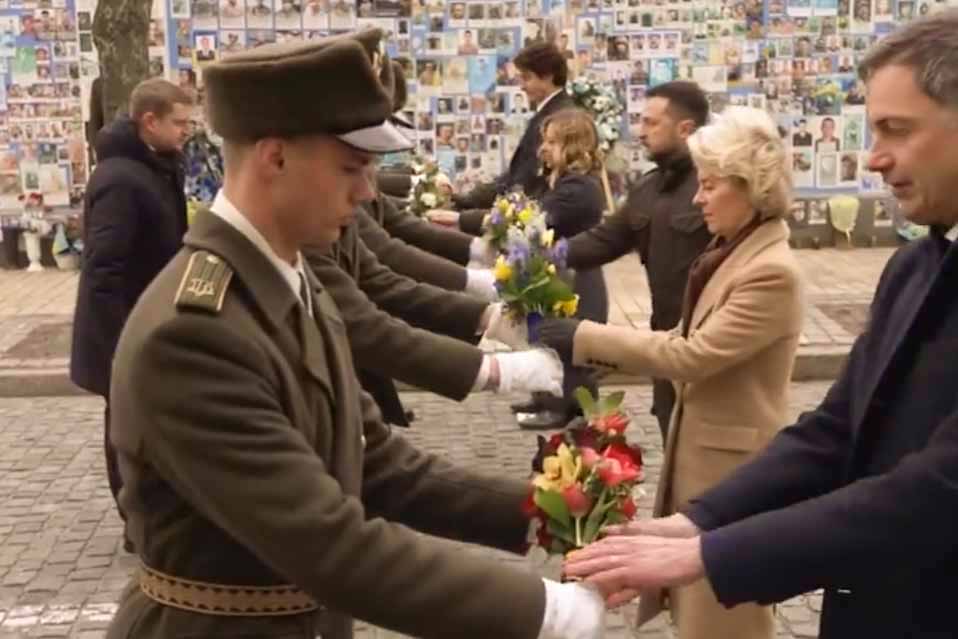Μήνυμα ενότητας από το αεροδρόμιο Αντόνοφ λίγο έξω από το Κίεβο, το σημείο όπου ξεκίνησε ο πόλεμος πριν από δύο χρόνια έστειλαν η πρόεδρος της Κομισιόν, Ούρσουλα φον ντερ Λάιεν, ο πρωθυπουργός του Βελγίου, Αλεξάντερ Ντε Κροο, η πρωθυπουργός της Ιταλίας, Τζόρτζια Μελόνι και ο πρωθυπουργός του Καναδά, Τζάστιν Τριντό.