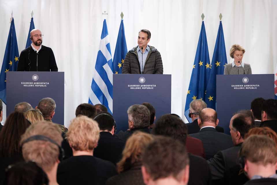 - “Κινούμαστε στο πλαίσιο του διεθνούς και ευρωπαϊκού δικαίου. Πάνω από όλα όσα συμβαίνουν στα ελληνικά σύνορα αποτελούν διεθνές πολιτικό ζήτημα πρώτου μεγέθους» δήλωσε ο πρωθυπουργός Κυριάκος Μητσοτάκης και συνέχισε λέγοντας: «Η Ελλάδα έδειξε ότι μπορεί να υπερασπιστεί τα δικαιώματα της με όπλο τη νομιμότητα και την αποφασιστικότητά της. Οι απειλές του κ. Ερντογάν δεν πέρασαν”.