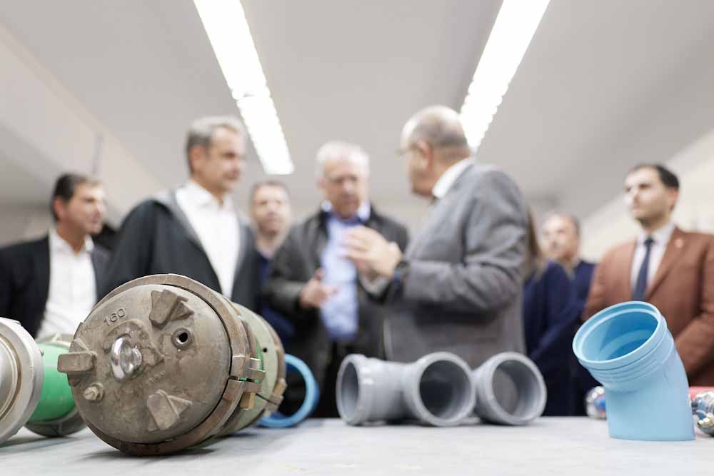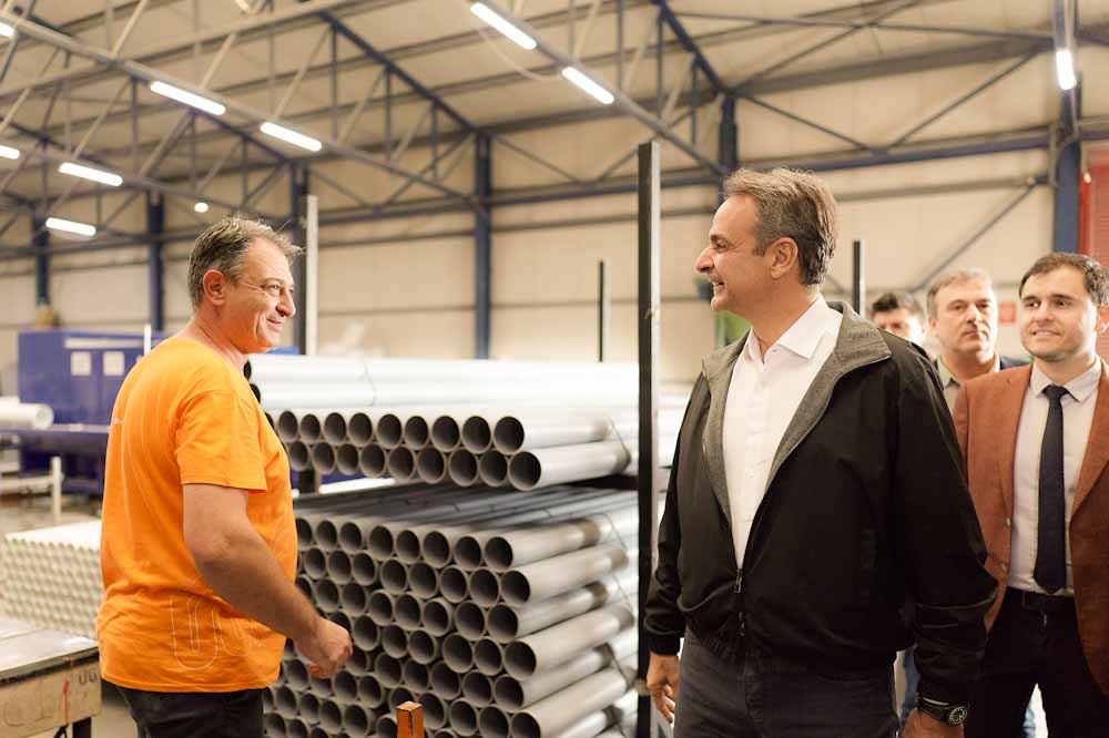 Ο Πρωθυπουργός επισκέφθηκε την εταιρεία Interplast, η οποία παράγει ολοκληρωμένα συστήματα ύδρευσης, θέρμανσης, κλιματισμού και αποχέτευσης στους τομείς της οικοδομής, των τεχνικών έργων και των βιομηχανικών εγκαταστάσεων. Ο Κυριάκος Μητσοτάκης ξεναγήθηκε από τον ιδιοκτήτη της, Τάσο Ριζόπουλο, στην εργοστασιακή μονάδα, ενώ ενημερώθηκε για τη διαδικασία παραγωγής. Η Interplast, που απασχολεί 140 εργαζόμενους, εξάγει τα προϊόντα της σε πάνω από 75 χώρες.