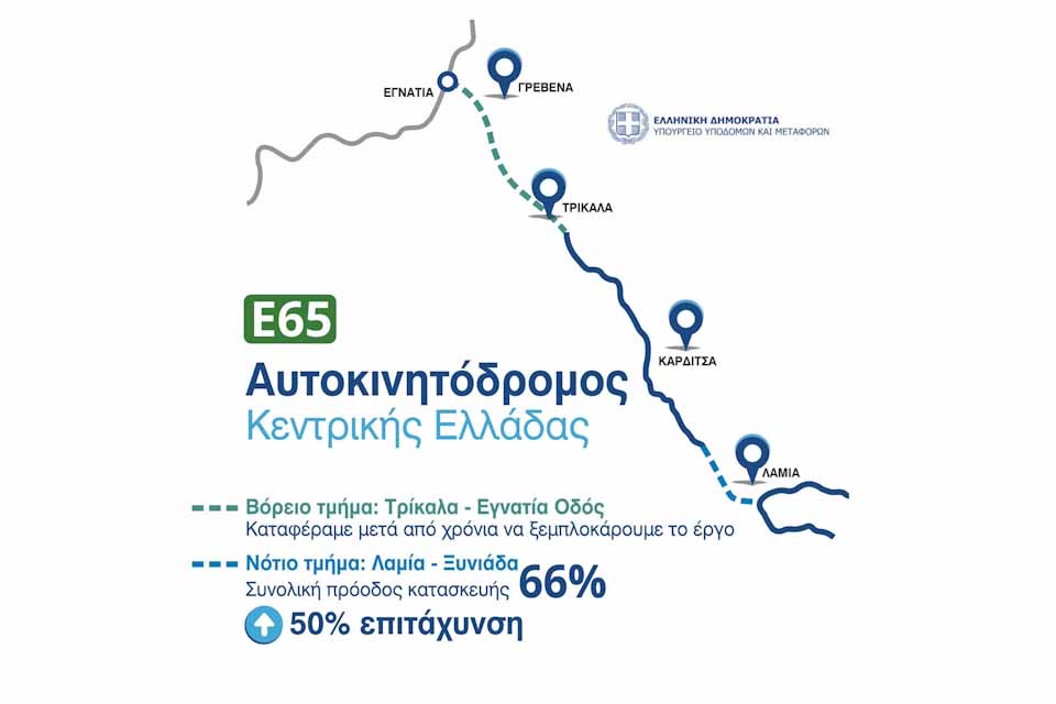 Υπενθυμίζεται ότι μετά από 10 χρόνια αβεβαιότητας, ο αυτοκινητόδρομος Κεντρικής Ελλάδας (Ε65) μπαίνει επιτέλους σε τροχιά ολοκλήρωσης, καθώς δόθηκε λύση για το πολύπαθο Βόρειο Τμήμα του, μήκους 70,5 χιλιομέτρων και προϋπολογισμού 442 εκ ευρώ.