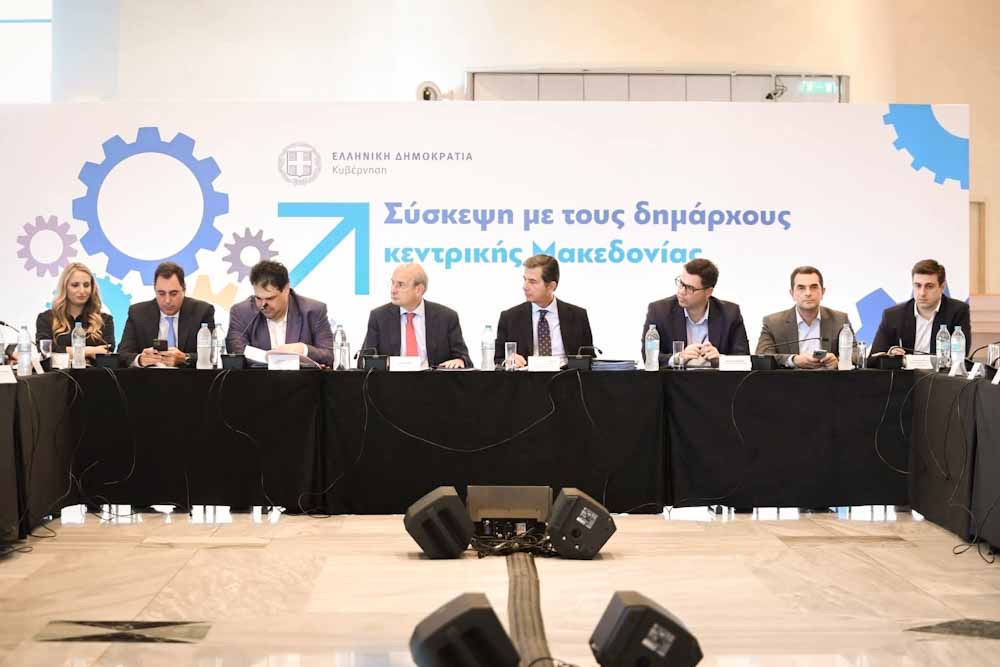 Σύσκεψη με βουλευτές, την περιφερειάρχη και 38 δημάρχους της Κεντρικής Μακεδονίας είχε χθες στη Θεσσαλονίκη κλιμάκιο της κυβέρνησης, υπό την προεδρία του αντιπροέδρου της κυβέρνησης, Κωστή Χατζηδάκη και με τη συμμετοχή του υπουργού Εσωτερικών Θεόδωρου Λιβάνιο, του υφυπουργού Εσωτερικών, αρμόδιου για θέματα Μακεδονίας-Θράκης, Κώστα Γκιουλέκα και του υφυπουργού παρά τω πρωθυπουργώ Θανάση Κοντογεώργη.