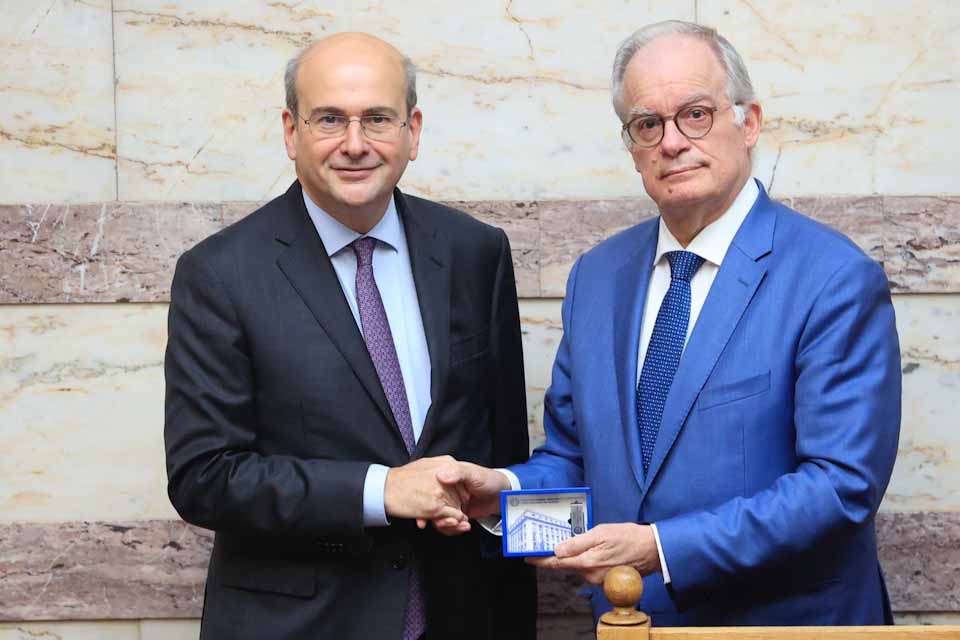 Ο Υπουργός Εθνικής Οικονομίας και Οικονομικών, Κωστής Χατζηδάκης, συνοδευόμενος από τον Υφυπουργό Εθνικής Οικονομίας και Οικονομικών, Αθανάσιο Πετραλιά, κατέθεσε σήμερα στη Βουλή τον Κρατικό Προϋπολογισμό για το 2025.
