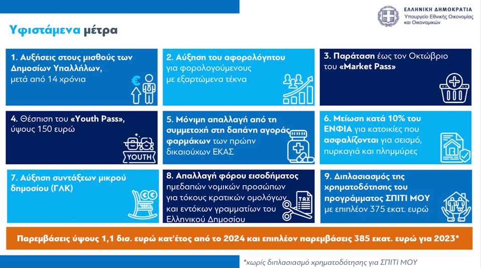 Το συνολικό κόστος των νέων παρεμβάσεων ανέρχεται σε 613 εκατ. ευρώ για το 2024 και σε επιπλέον 411 εκατ. ευρώ για το 2023.