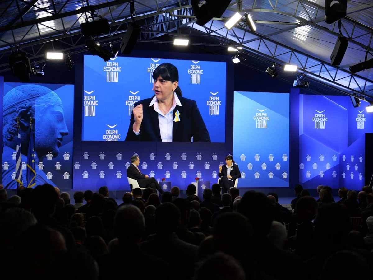 Η ανάγκη εφαρμογής του νόμου χωρίς εξαιρέσεις και η ενίσχυση της εμπιστοσύνης των πολιτών προς τους ευρωπαϊκούς θεσμούς βρέθηκαν στο επίκεντρο της συζήτησης με την Ευρωπαία Γενική Εισαγγελέα Laura Kövesi στο πλαίσιο του 11ου Οικονομικού Φόρουμ των Δελφών, που πραγματοποιείται στους Δελφούς από τις 22 έως τις 25 Απριλίου.