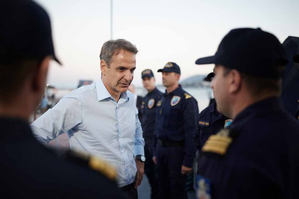 Στη συνέχεια, ο Πρωθυπουργός επισκέφθηκε το περιπολικό σκάφος ΛΣ 900 «Μαρίνος Ζαμπάτης», συνομίλησε με στελέχη του Λιμενικού Σώματος ευχαριστώντας τα για τις υπηρεσίες που προσφέρουν για την προστασία των θαλασσίων συνόρων της χώρας μας.