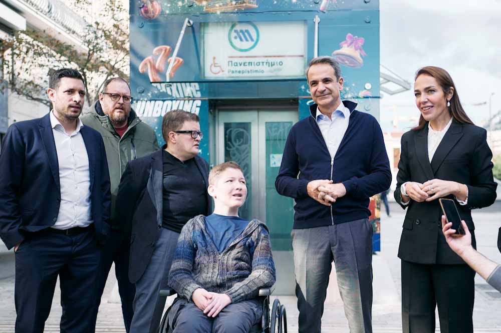 Ο Πρωθυπουργός, συνοδευόμενος από την Υπουργό Κοινωνικής Συνοχής και Οικογένειας Δόμνα Μιχαηλίδου, τον Υπουργό Ψηφιακής Διακυβέρνησης Δημήτρη Παπαστεργίου και τον Αναπληρωτή Υπουργό Υποδομών και Μεταφορών Κωνσταντίνο Κυρανάκη, είχε την ευκαιρία να δει τις άρτιες υποδομές προσβασιμότητας που διαθέτει το Μετρό και επιβιβάστηκε σε συρμό μαζί με τον Πέτρο και τον Παναγιώτη, ενώ είχε την ευκαιρία να συνομιλήσει με εργαζόμενους.