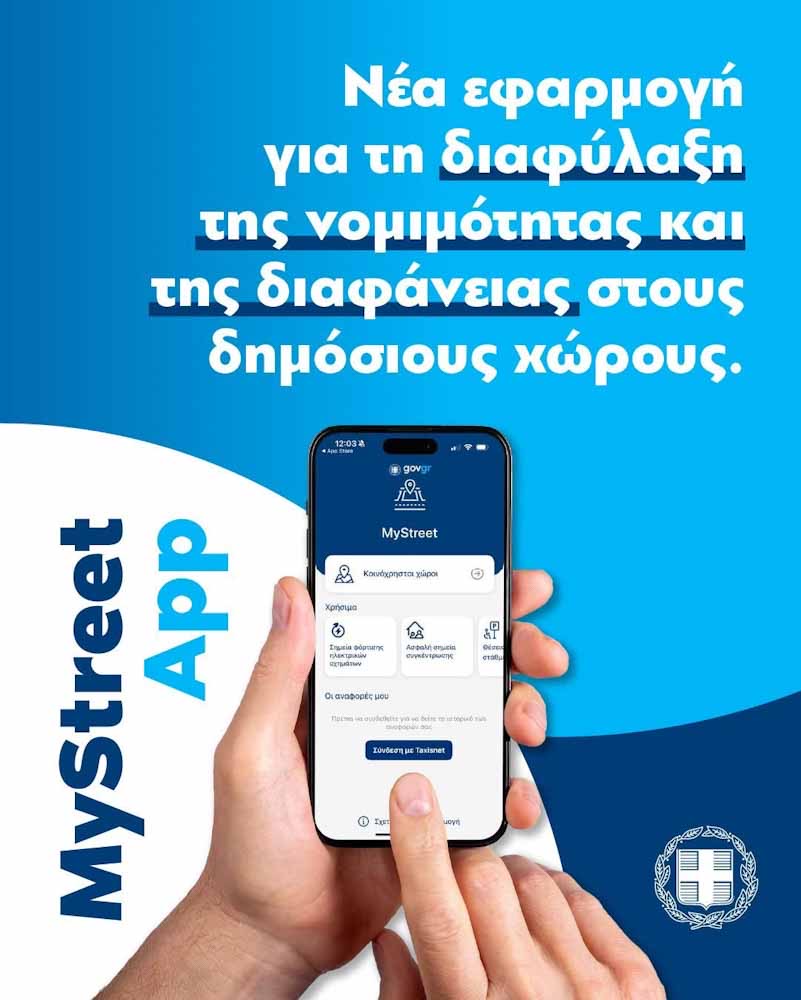 Η εφαρμογή MyStreet, ένα σύγχρονο ψηφιακό εργαλείο που δίνει τη δυνατότητα στους πολίτες να συμβάλλουν στη διαφύλαξη της νομιμότητας και της διαφάνειας στους δημόσιους χώρους, παρουσιάστηκε σήμερα σε σύσκεψη υπό τον Πρωθυπουργό Κυριάκο Μητσοτάκη, στο Μέγαρο Μαξίμου.