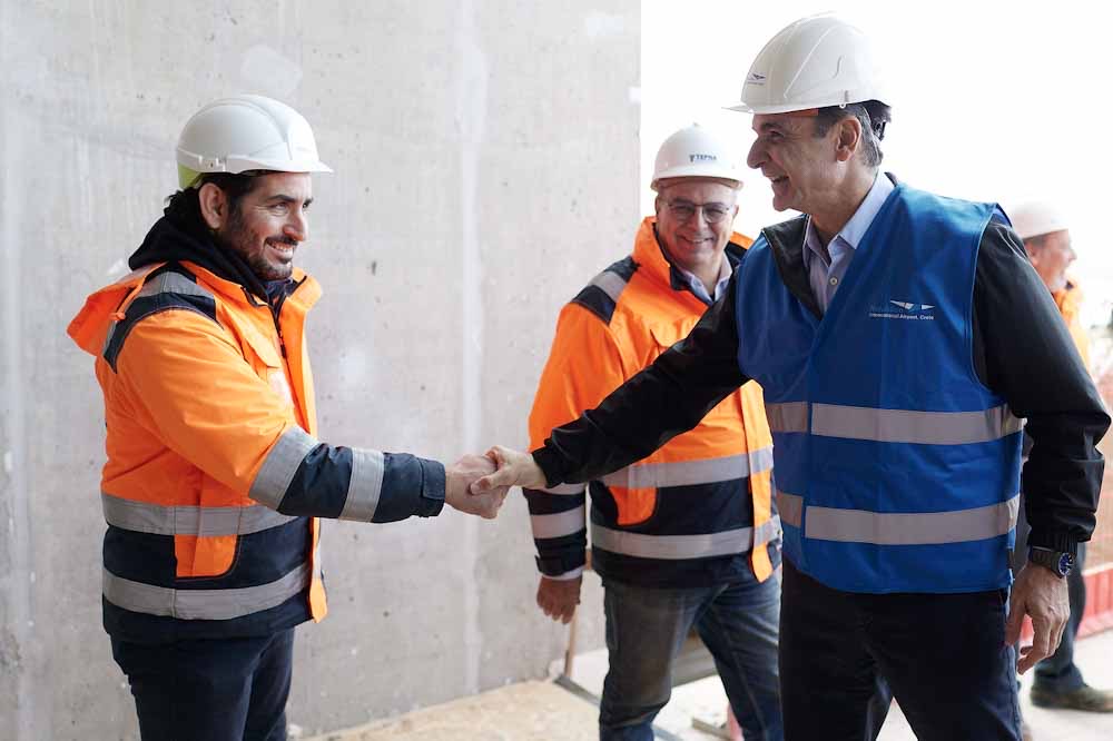 Ο Πρωθυπουργός Κυριάκος Μητσοτάκης επισκέφτηκε το πρωί το εργοτάξιο όπου κατασκευάζεται ο νέος Διεθνής Αερολιμένας Ηρακλείου, στο Καστέλι.