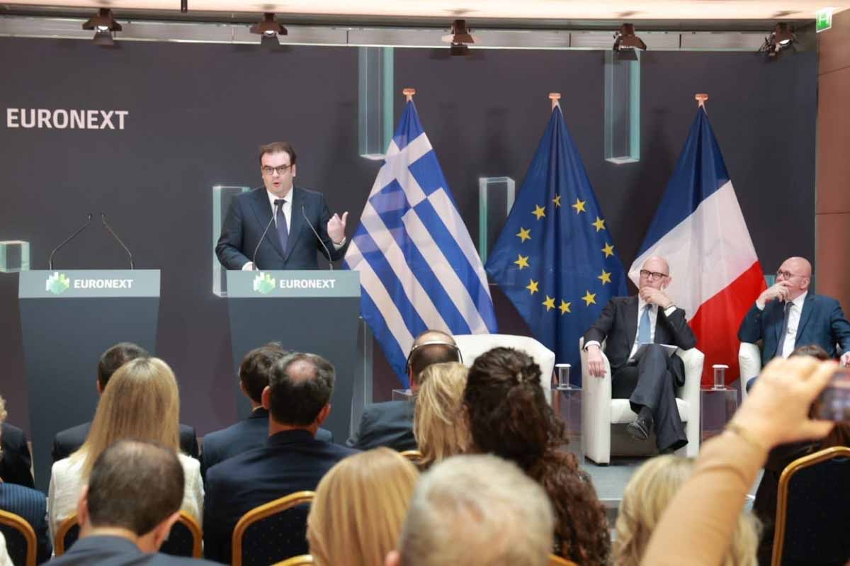 Θέλω να καλωσορίσω τον Γάλλο Υπουργό Οικονομικών, Roland Lescure, και να ευχαριστήσω θερμά τον Διευθύνοντα Σύμβουλο της Euronext, Stéphane Boujnah, για την εμπιστοσύνη τους στην Ελλάδα. Χαιρετίζω επίσης την παρουσία των Πρέσβεων των κρατών-μελών της Ευρωπαϊκής Ένωσης στα οποία δραστηριοποιείται η Euronext. Η παρουσία τους αυτή αναδεικνύει τον πανευρωπαϊκό χαρακτήρα του εγχειρήματος.