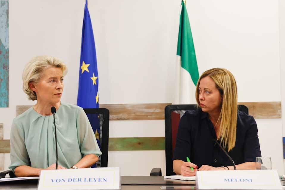 Στην Λαμπεντούζα, βρέθηκαν σήμερα η Ιταλίδα πρωθυπουργός Τζόρτζια Μελόνι και η πρόεδρος της Ευρωπαϊκής Επιτροπής Ούρσουλα φον ντερ Λάιεν.
