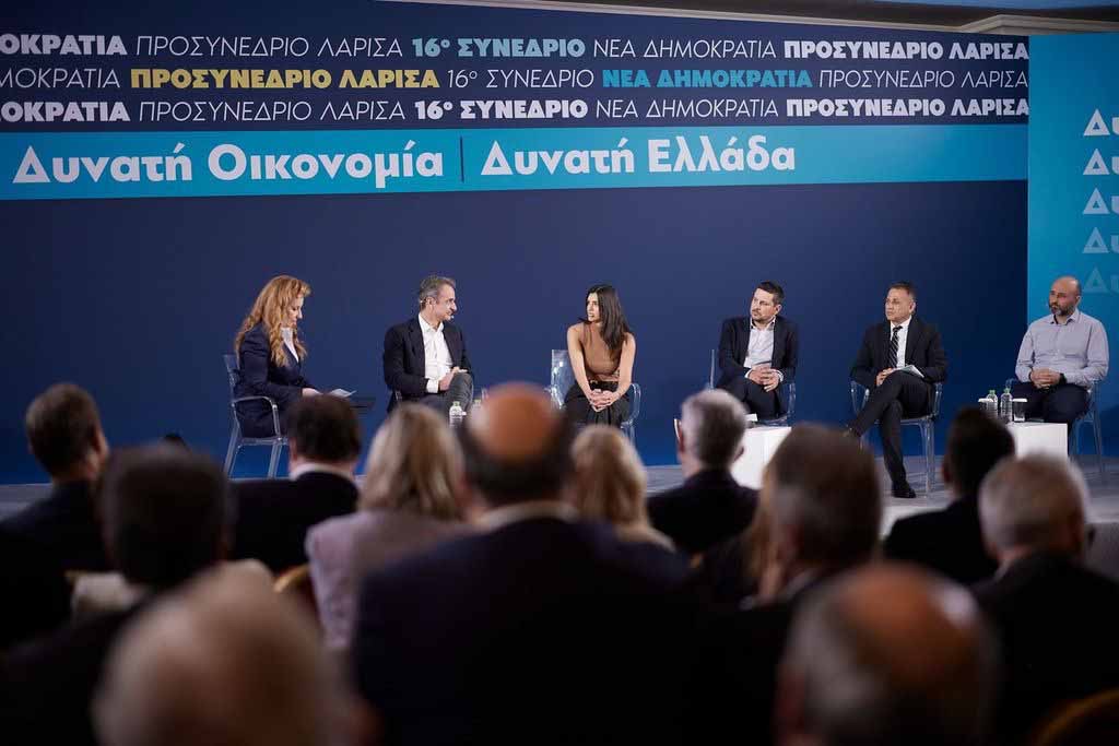 Συζήτηση του Πρωθυπουργού και Προέδρου της Νέας Δημοκρατίας Κυριάκου Μητσοτάκη με πολίτες, στο πλαίσιο του προσυνεδρίου της Νέας Δημοκρατίας με θέμα «Δυνατή Οικονομία, Δυνατή Ελλάδα», στη Λάρισα
