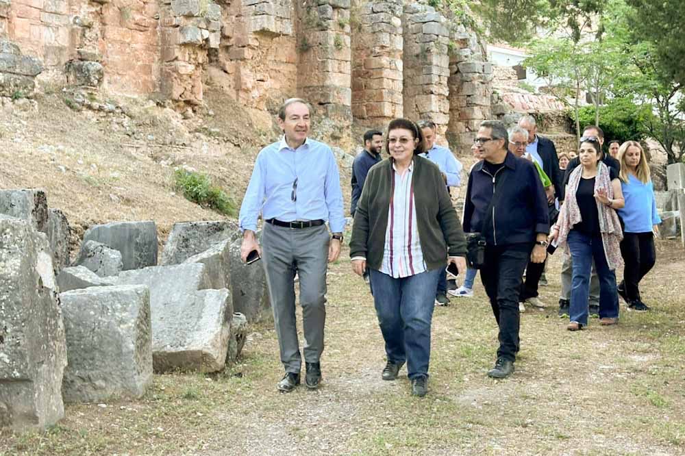 Την Υπουργό, σε όλη τη διάρκεια της αυτοψίας της, συνόδευσαν ο Υφυπουργός Δικαιοσύνης και Βουλευτής Π.Ε. Φωκίδας Ιωάννης Μπούγας, ο Γενικός Γραμματέας Πολιτισμού Γιώργος Διδασκάλου, η Πρόεδρος του Δ.Σ. του ΟΔΑΠ Νικολέτα Βαλάκου, ο Προϊστάμενος της Επιτελικής Δομής ΕΣΠΑ του ΥΠΠΟ Ιωάννης Μυλωνάς, ο Προϊστάμενος της Διεύθυνσης Μελετών και Εκτέλεσης Έργων Μουσείων και Πολιτιστικών Κτιρίων Κωνσταντίνος Φρισήρας, ο αν. Προϊστάμενος της Διεύθυνσης Αναστήλωσης ΑρχαίωνΜνημείων Θεμιστοκλής Βλαχούλης, , η Προϊσταμένη της Εφορείας Αρχαιοτήτων Φωκίδας Αθανασία Ψάλτη, ο Προϊστάμενος του Τμήματος Μελετών Αρχαίων Μνημείων Μιχάλης Λεφαντζής, και άλλα υπηρεσιακά στελέχη του ΥΠΠΟ.