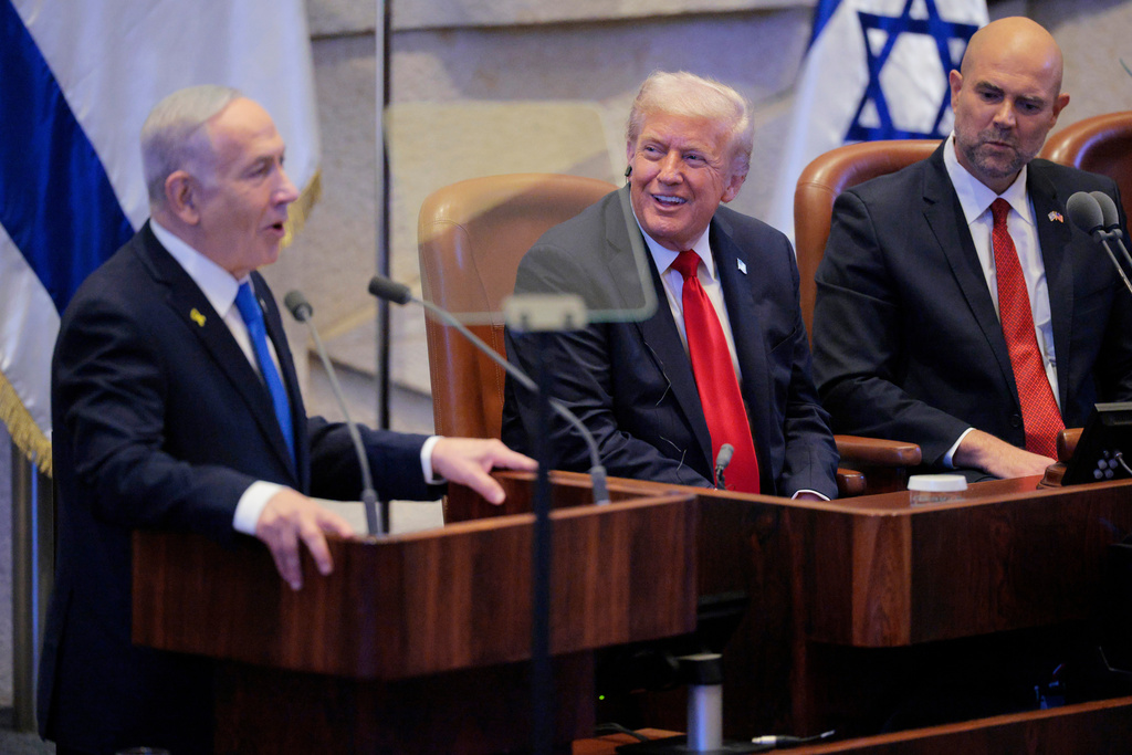 «Έχω μια ιδέα. Κύριε Πρόεδρε, γιατί δεν του χορηγείτε αμνηστία;» ανέφερε ο Τραμπ κατά την ομιλία του στη Κνεσέτ, απευθυνόμενος στο Ισαάκ Χέρτσογκ.