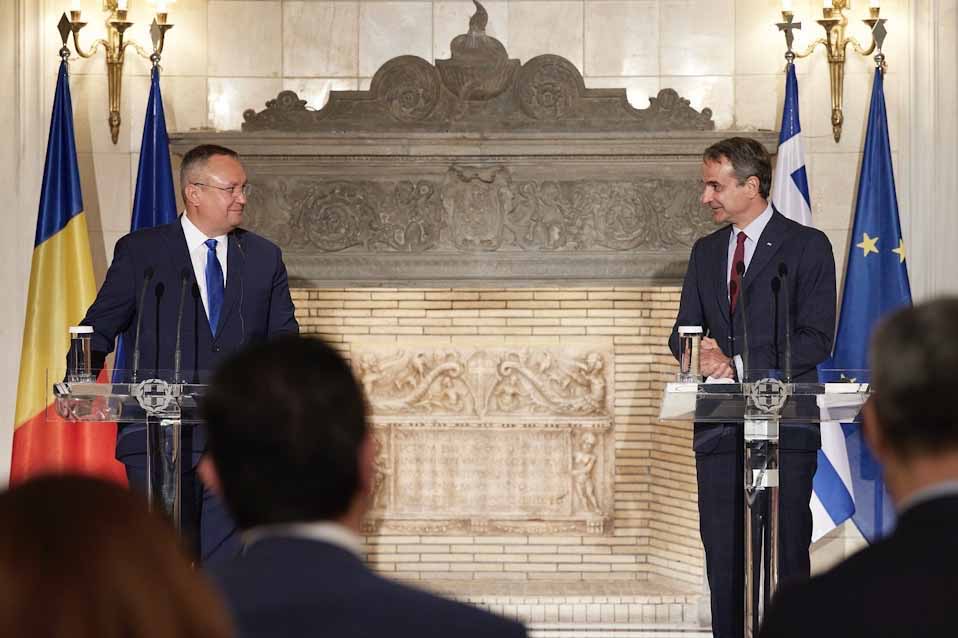Τόνισε επίσης ότι με τον Ρουμάνο πρωθυπουργό συζήτησαν τις εξελίξεις όσον αφορά τη ρωσική εισβολή και την επαναφορά στην ευρωπαϊκή πραγματικότητα του ωμού αναθεωρητισμού «αναζητώντας πάντα τρόπους να στηρίξουμε την αμυνόμενη Ουκρανία και φυσικά ανάμεσα τους και τις δυνατότητες να βρεθούν εναλλακτικές οδοί εξαγωγής και μεταφοράς της μεγάλης αγροτικής παραγωγής της Ρουμανίας στις διεθνείς αγορές». Ο κ. Μητσοτάκης επισήμανε ότι διαπιστώθηκε σύγκλιση απόψεων και σύμπνοια επιδιώξεων και επανέλαβε ότι η Ελλάδα στηρίζει ανεπιφύλακτα την προσπάθεια της Ρουμανίας αλλά και της Βουλγαρίας για ένταξη στη ζώνη του Σένγκεν.