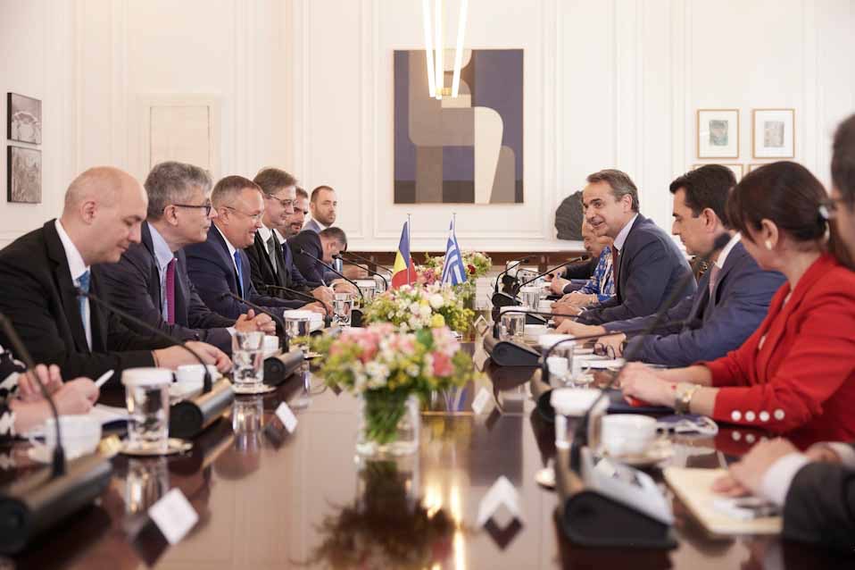 Την αμοιβαία βούλησή τους για περαιτέρω αναβάθμιση των διμερών σχέσεων καθώς και τον καλύτερο συντονισμό και τη συνεργασία για την αξιοποίηση των υφιστάμενων δυνατοτήτων ειδικά στον τομέα της ενέργειας, επιβεβαίωσαν κατά τη συνάντησή τους στο Μέγαρο Μαξίμου, ο πρωθυπουργός Κυριάκος Μητσοτάκης με τον ομόλογό του της Ρουμανίας, Νικολάε Ίονελ Τσούκα.