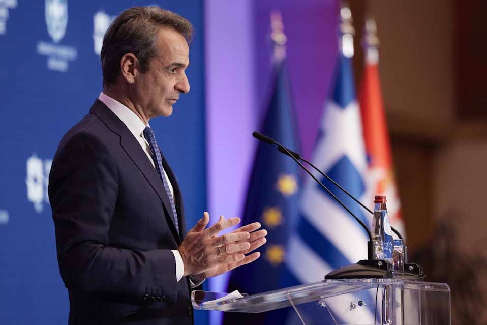 Κυριάκος Μητσοτάκης: «Όταν κοιτάζω τη Σερβία βλέπω μια δυναμική εξαγωγική οικονομία. Και η Σερβία θα θελήσει αύριο όχι μόνο να εισάγει προϊόντα αλλά να εξάγει τα προϊόντα της προς τις παγκόσμιες αγορές. Από πού μπορεί να το κάνει; Θέλουμε ένα μεγάλο μέρος αυτών των εξαγωγών να μπορεί να περνάει από την Ελλάδα. Αλλά γι’ αυτό χρειαζόμαστε σύγχρονα τρένα και σύγχρονους δρόμους. Και η πατρίδα μας, αγαπητέ Aleksandar, επενδύει ήδη στην αναβάθμιση του σιδηροδρομικού δικτύου από τη Θεσσαλονίκη μέχρι την Ειδομένη ώστε να μπορούμε να καλύψουμε αυτές τις μεγάλες ανάγκες».