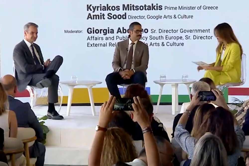 Στο πλαίσιο της εκδήλωσης στο Εθνικό Μουσείο Σύγχρονης Τέχνης ο Πρωθυπουργός συμμετείχε σε συζήτηση με τον Amit Sood, Διευθυντή του πολιτιστικού ιδρύματος της Google. Τη συζήτηση συντόνισε η Giorgia Abeltino, Επικεφαλής Κυβερνητικών Υποθέσεων και Δημόσιας Πολιτικής της Google για την Ελλάδα, την Κύπρο και τη Μάλτα.