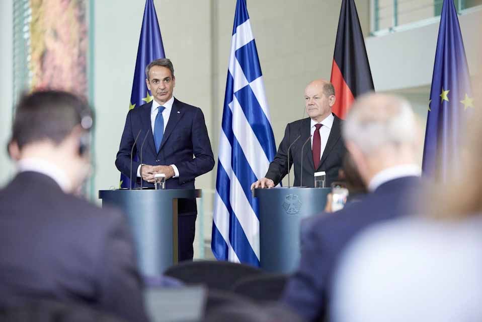 Αναλυτικά, οι Δηλώσεις του Πρωθυπουργού Κυριάκου Μητσοτάκη, στην κοινή συνέντευξη Τύπου με τον Καγκελάριο της Γερμανίας Olaf Scholz.