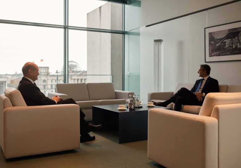 Ο Πρωθυπουργός Κυριάκος Μητσοτάκης, είχε κατ’ ιδίαν συνάντηση με τον Καγκελάριο της Γερμανίας Olaf Scholz, στην Καγκελαρία.