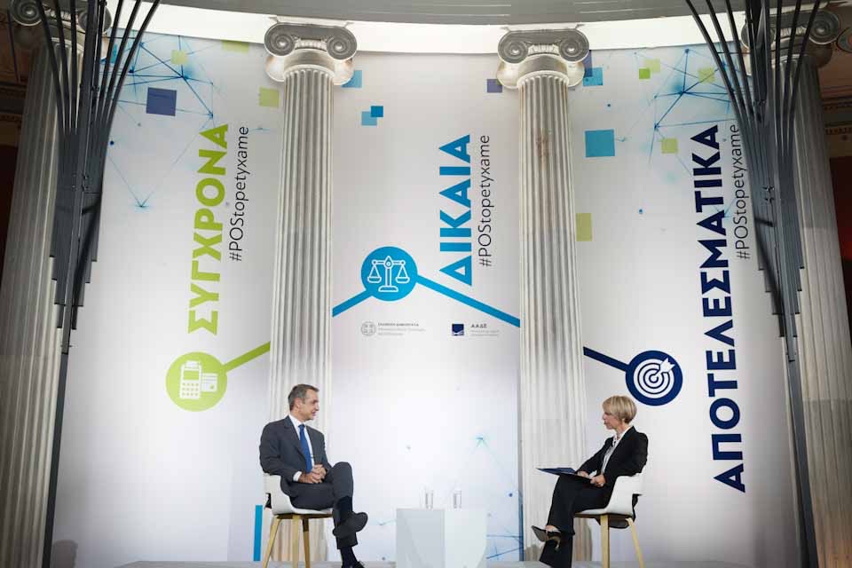 Αναλυτικά, η συζήτηση του Πρωθυπουργού Κυριάκου Μητσοτάκη με τη δημοσιογράφο Έλενα Λάσκαρη, στο πλαίσιο εκδήλωσης για τον εκσυγχρονισμό της φορολογικής διοίκησης και της εξυπηρέτησης του πολίτη, με τίτλο «ΣΥΓΧΡΟΝΑ – ΔΙΚΑΙΑ – ΑΠΟΤΕΛΕΣΜΑΤΙΚΑ»