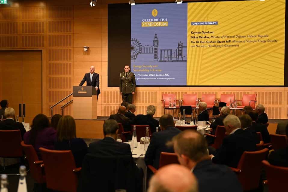Νωρίτερα, ο κ. Δένδιας άνοιξε τις εργασίες του 7ου ΕλληνοΒρετανικού Συμποσίου που φέτος ασχολείται με την Ενεργειακή Ασφάλεια και Βιωσιμότητα στην Ευρώπη στο οποίο ο κ. Δένδιας μίλησε για τις ελληνικές στρατηγικές επιλογές στο τομέα της ενέργειας.