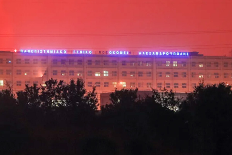 Οι φλόγες πλησίασαν κυριολεκτικά μέσα σε τμήμα της αυλής του Πανεπιστημιακού Γενικού Νοσοκομείου της Αλεξανδρούπολης την ώρα που το προσωπικό με ασθενοφόρα προχωρούσε στην εκκένωση του. Οι συγγενείς ασθενών είχαν κληθεί νωρίτερα να παραλάβουν τους ανθρώπους τους και να τους πάρουν στα σπίτια εφόσον ήταν δυνατή η έκδοση εξιτηρίου.