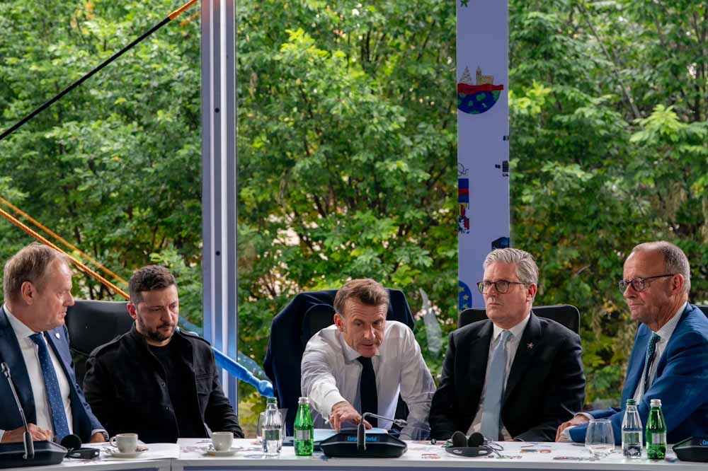 Είχε προηγηθεί τηλεφωνική επικοινωνία του Μακρόν, του Στάρμερ, του Ζελένσκι, του Γερμανού καγκελάριου Φρίντριχ Μερτςκαι του Πολωνού πρωθυπουργού Ντόναλντ Τουσκ με τον πρόεδρο των ΗΠΑΝτόναλντ Τραμπ.