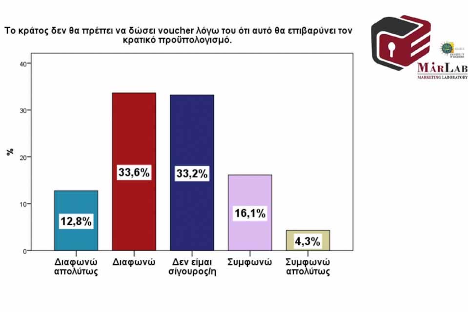 • Η παροχή voucher θεωρείται θετική ενέργεια για το 67% των Ελλήνων ωστόσο όταν λαμβάνουν υπόψη την επιβάρυνση του κρατικού προϋπολογισμού από την παροχή του, τότε μόνο το 46,4% το υποστηρίζει.