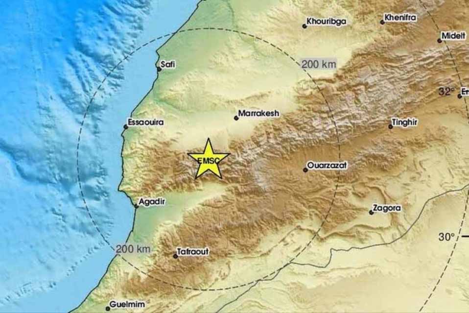 Η σεισμική δόνηση που σημειώθηκε λίγο μετά τις 23:00 (τοπική ώρα, 01:00 ώρα Ελλάδος) ήταν μεγέθους 6,9 Ρίχτερ, σύμφωνα με το Ευρωμεσογειακό Σεισμολογικό Κέντρο (EMSC). Το επίκεντρο εντοπίστηκε 77 χιλιόμετρα νοτιοδυτικά της πόλης Μαρακές και το εστιακό βάθος υπολογίζεται σε 10 χιλιόμετρα.