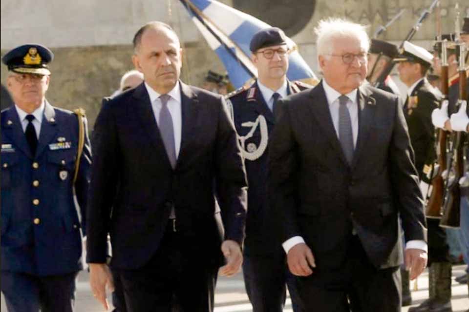 Υποδοχή του Προέδρου της Ομοσπονδιακής Δημοκρατίας της Γερμανίας, Frank-Walter Steinmeier, από τον ΥΠΕΞ Γιώργο Γεραπετρίτη & κατάθεση στεφάνου στο Μνημείο του Αγνώστου Στρατιώτη.